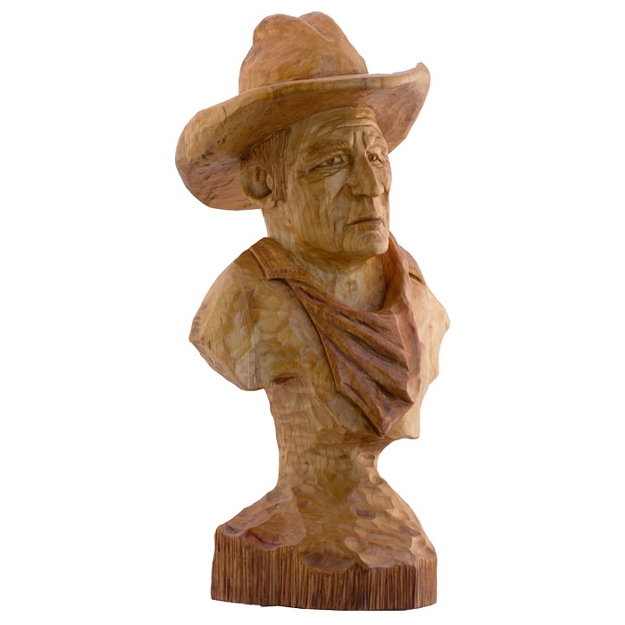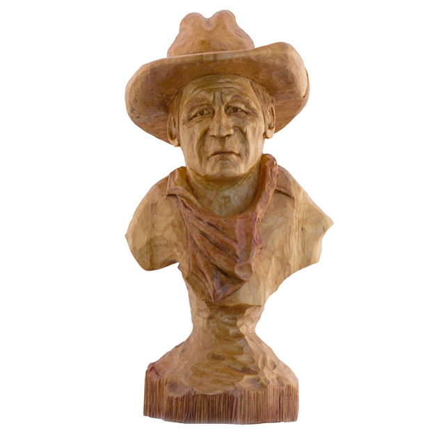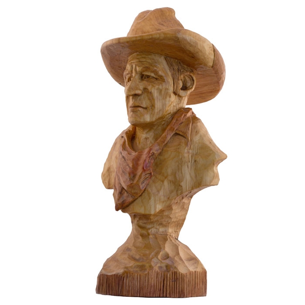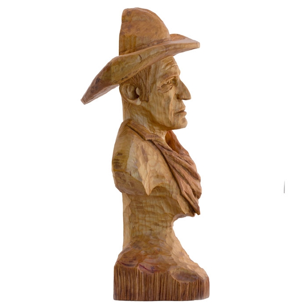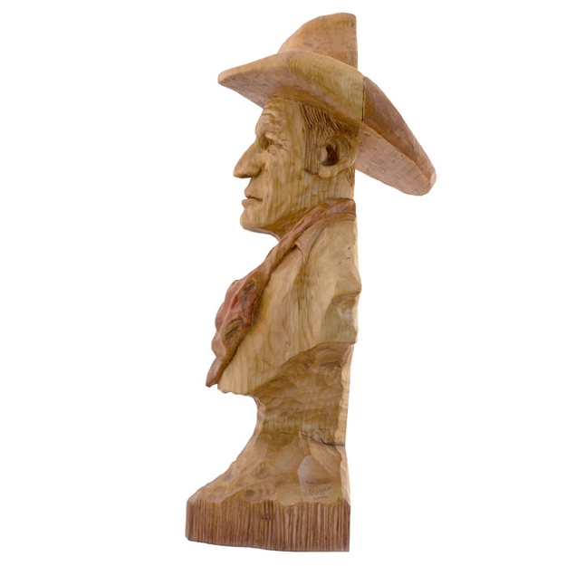 Some have said this piece looks like John Wayne. If so, that was not my intention. The focus here is the eyes. These eyes are actually my old droopy eyes. I utilized a mirror to do this, borrowing a technique used by classical pre-photography sculptors.