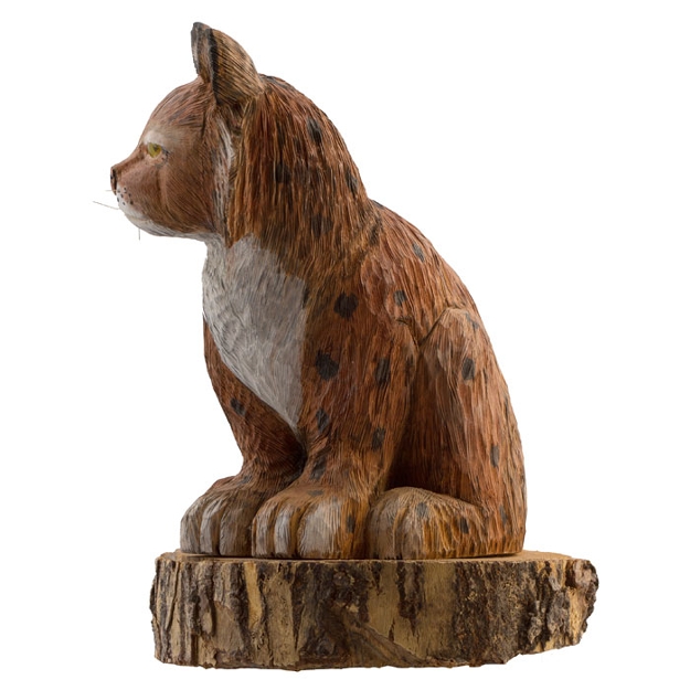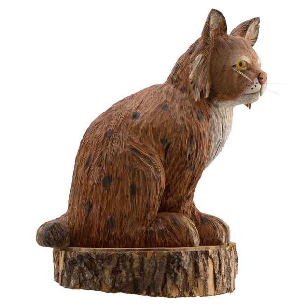 The pattern for this carving comes from carver/author Rick Butz. It is basswood, hand carved, glass eyes, wood burned texture and finished with acrylic paints. 7" h X 7" w