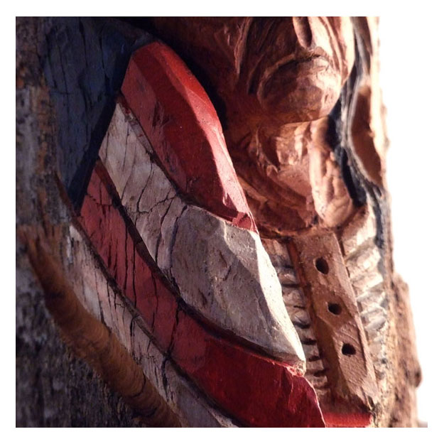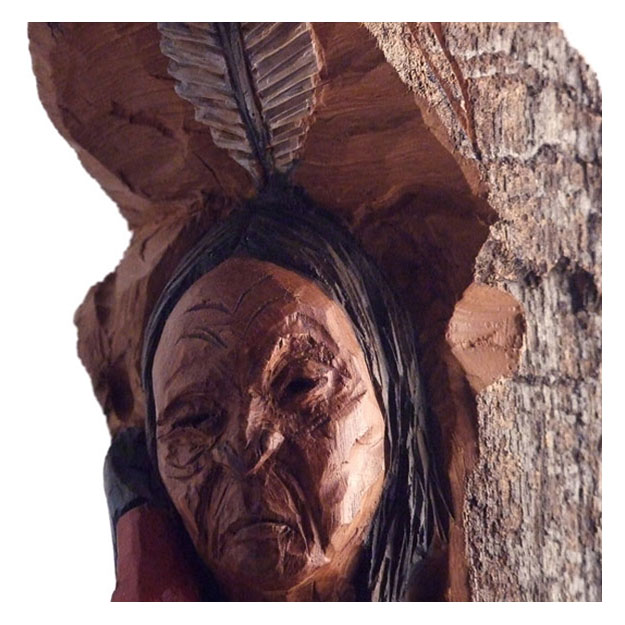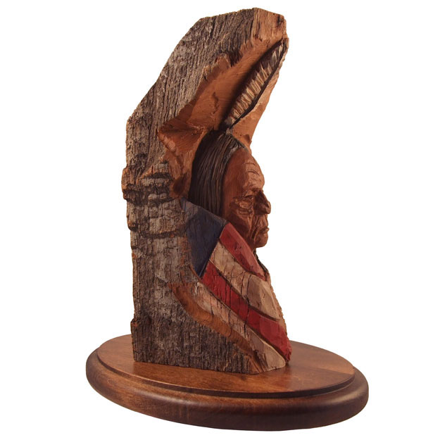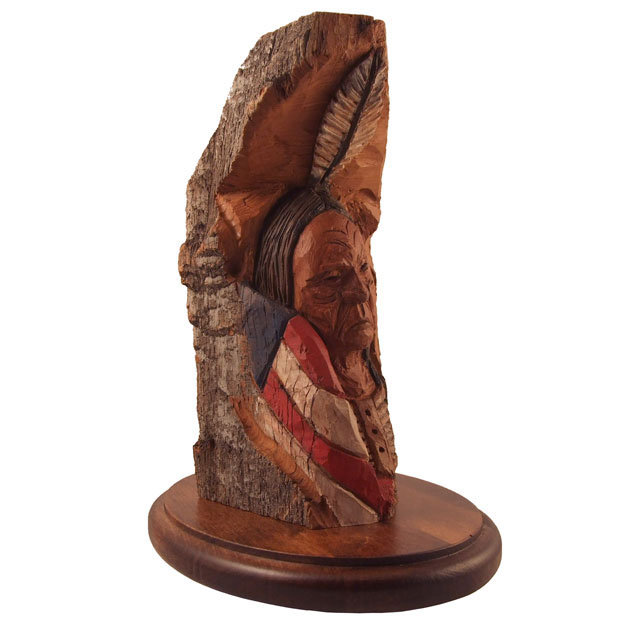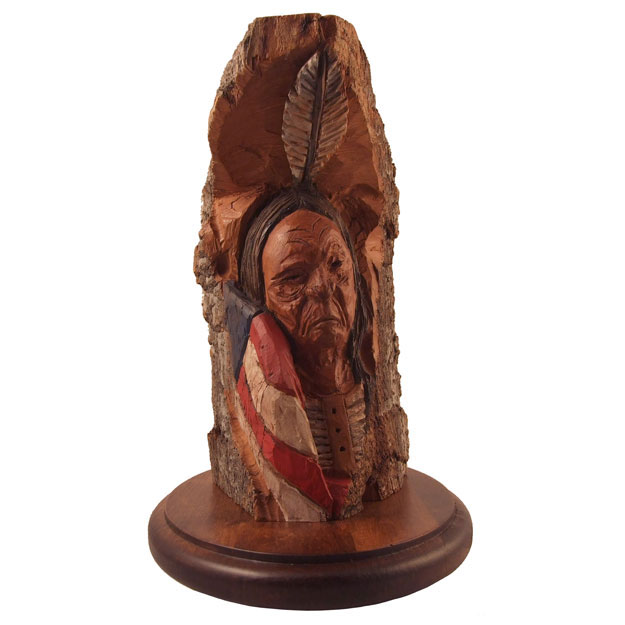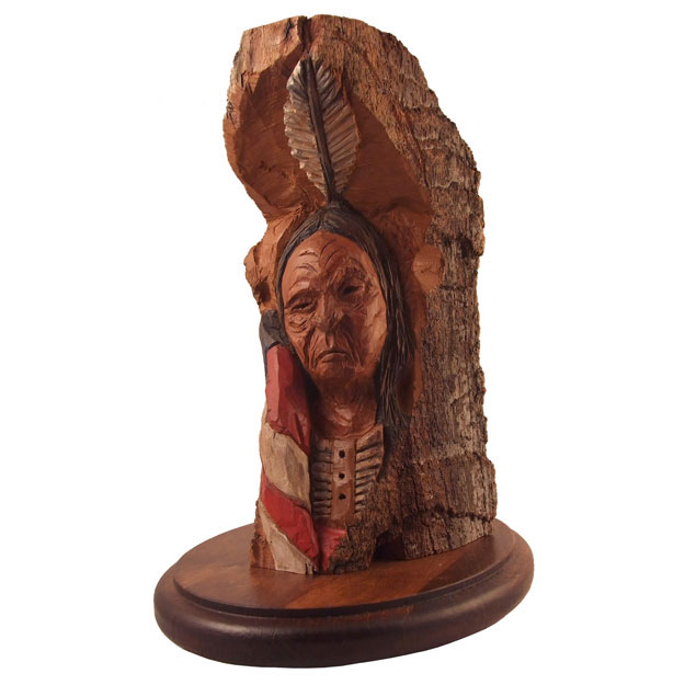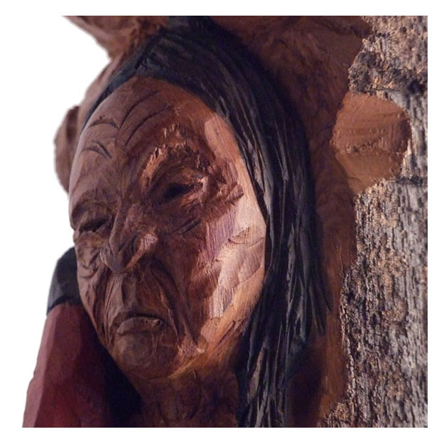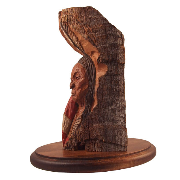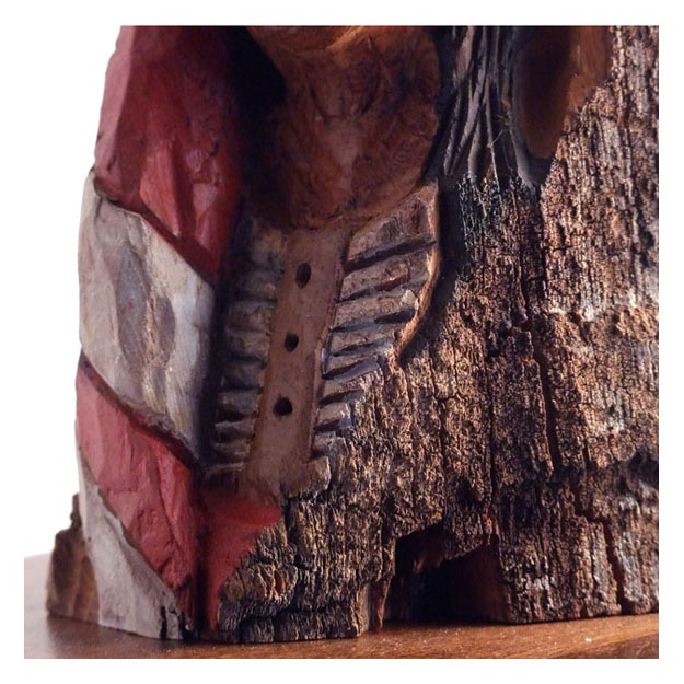 A gift for a friend. Montana cottonwood bark. My first "serious"carving in this material. Acrylic paints and clear coat. 9"h.