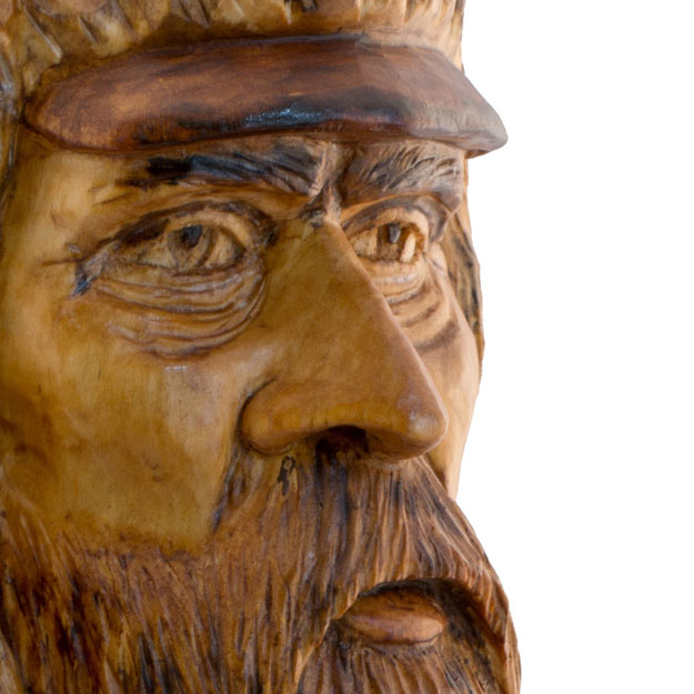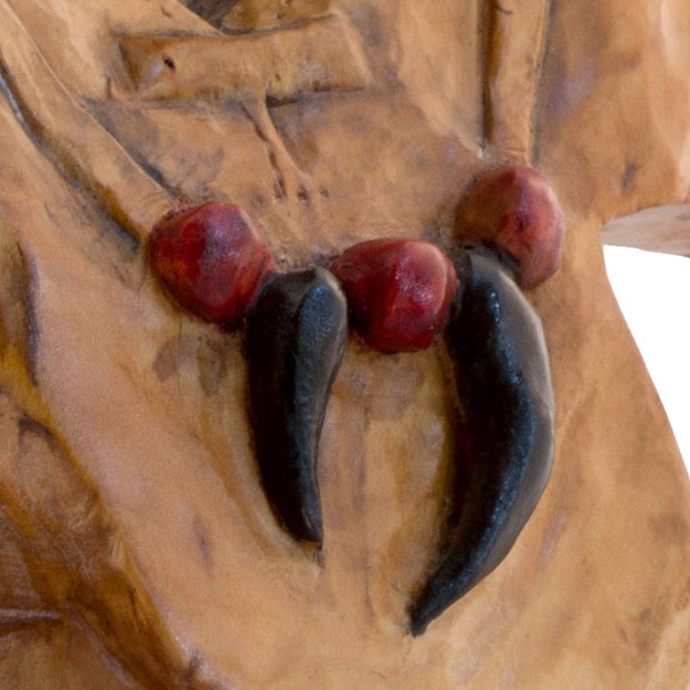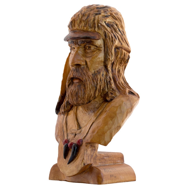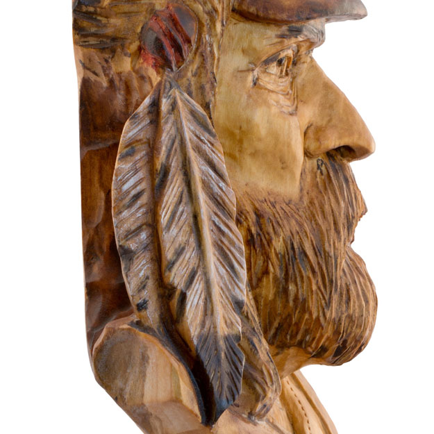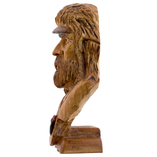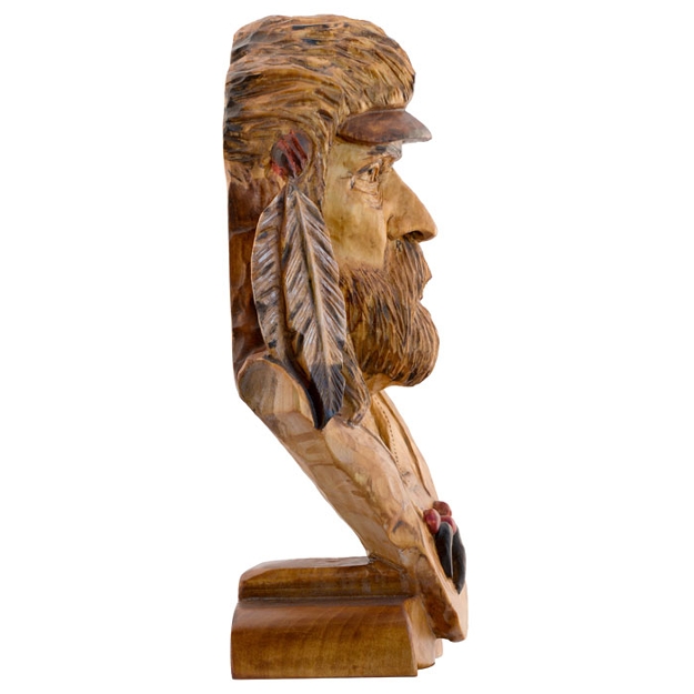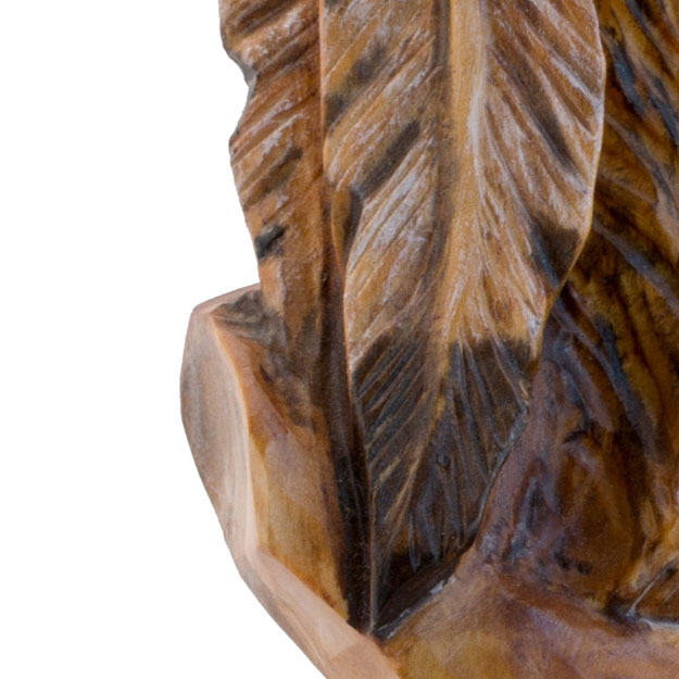 This entire piece is about those feathers. I had seen a bronze something like this in an art museum in Colorado and was intrigued by the feathers. Basswood, boiled linseed oil, lots of oil stains (more than usual for me), clear coat and liquid wax. 15" h