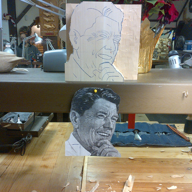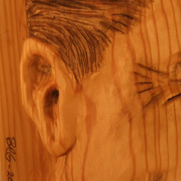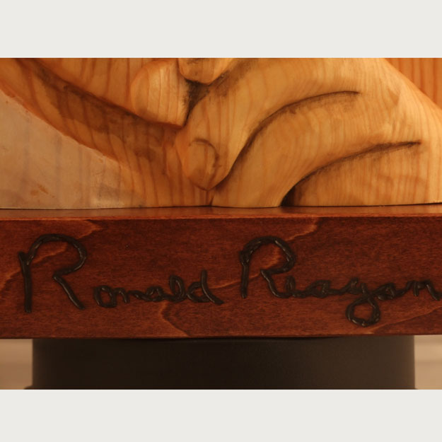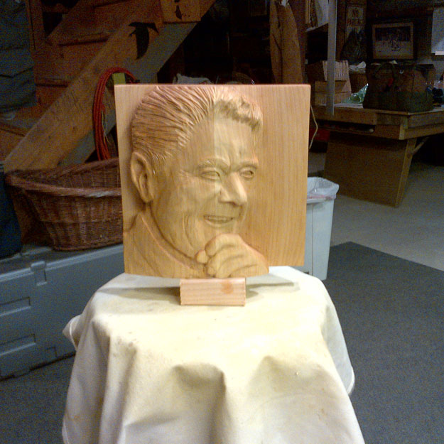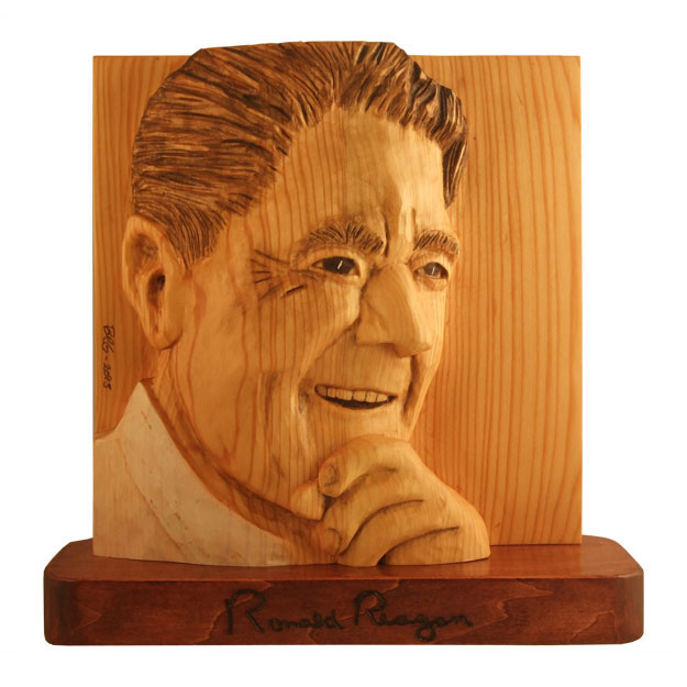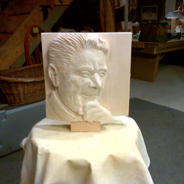 Ronald Wilson Reagan was the 40th President of the United States (1981-1989). The idea for this piece was suggested by a friend and former business partner last fall. I chose a US Postage stamp for the likeness and did the carving as a relief. The orientation is a three quarter profile view, which proved to be a challenge, along with the fact that most people know what Reagan looks like. I worked on this piece on and off (remember this is a hobby) from November 2012 to August 2013.